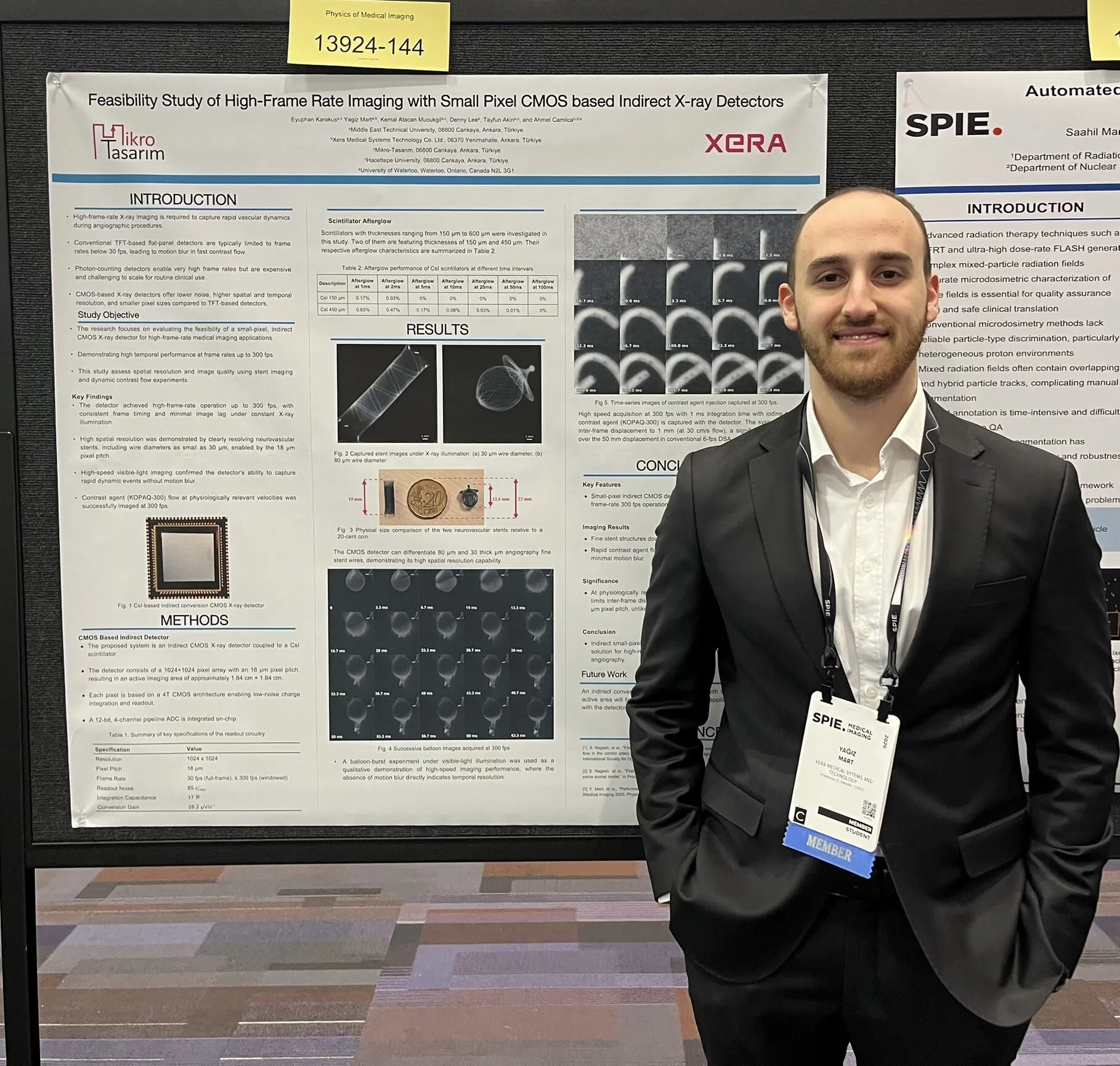 One of the presenters, Yağız Mart, serves as an R&D Engineer at XERA, focusing on X-ray detector technologies and performance optimization, while also pursuing an M.Sc. degree in the Electronics Department at Middle East Technical University (METU).