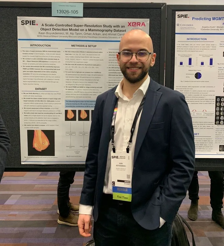 Kaan Büyükdemirci, who leads XERA’s AI and software development efforts while continuing his master’s studies at Bilkent University, presented the work titled “A Scale-Controlled Super-Resolution Study with YOLOv11 on VinDr-Mammo” in the poster session.