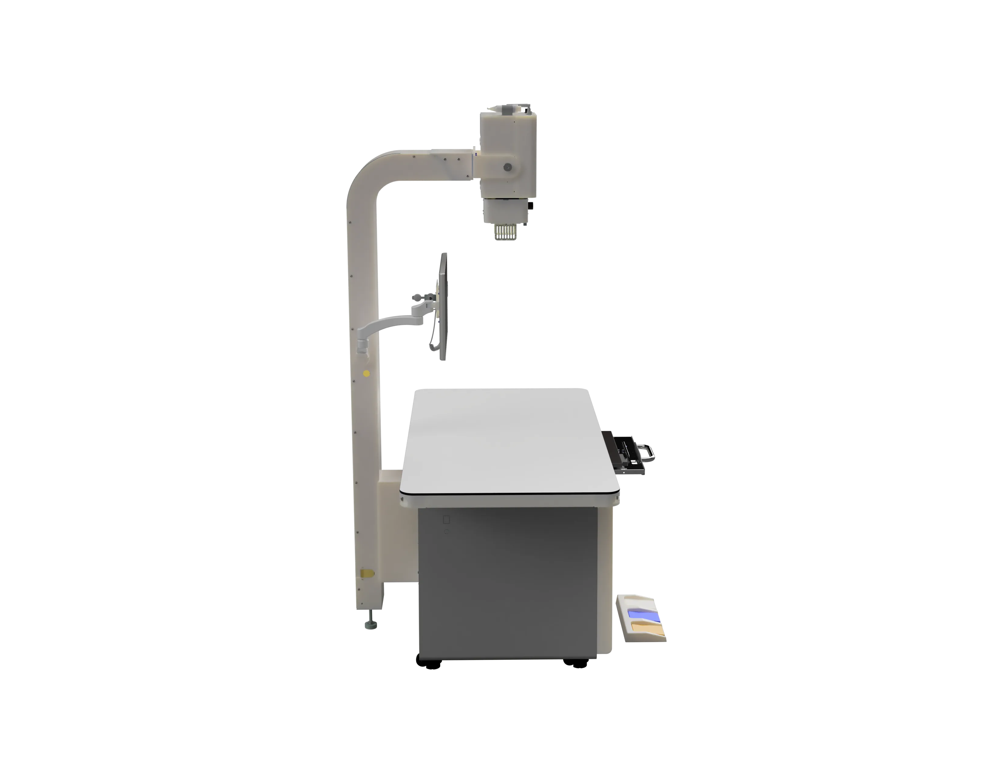 The VR10X-MB5 is a durable and high-performance X-ray solution specifically designed to meet the needs of veterinary clinics. Featuring a robust frame and fixed table with high load capacity, it delivers high-resolution imaging with its 5 kW monoblock generator. Its sturdy construction allows for the safe positioning of even large animals, making it a standout choice.